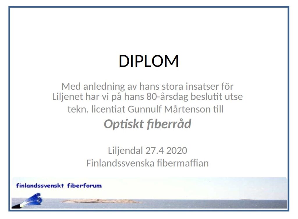 Det finlandssvenska fiberforumet, av en del kallat ”Finlandssvenska Fibermaffian”, kan också utnämna speciellt förtjänstfulla kolleger till Optiska Fiberråd.